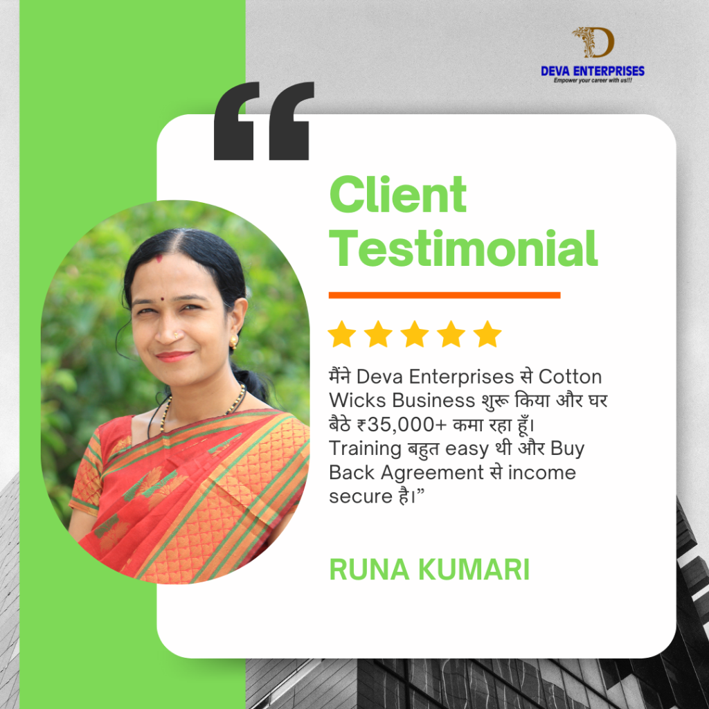 👉 Hum aapke banaye hue wicks ko minimum 3 saal tak buy-back karte hain, jisse aapko product bechne ki tension nahi rahegi.
